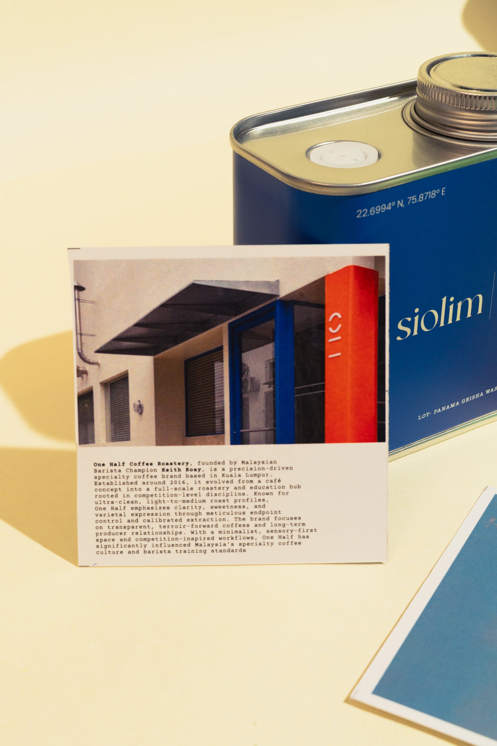 In return, Siolim roasted one of One Half’s sourced coffees, a Panama Geisha from the Cordillera region, processed as washed, a competition-level lot known for its elegance and complexity.